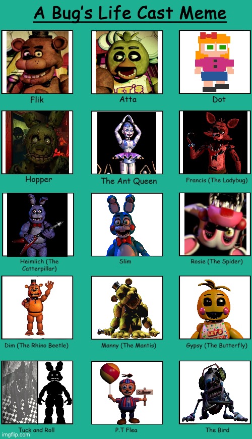 A Bug’s Life cast (FNAF style)