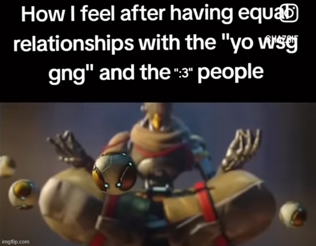 I imagine it more like the goofy smile after my friend told me they accidentaly nuked ma base