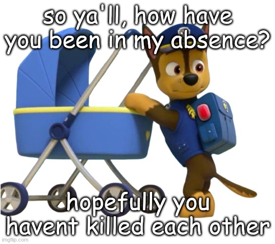 so ya'll, how have you been in my absence? hopefully you havent killed each other
