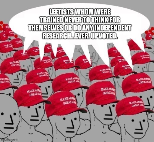 LOL . . . and the only ones BELIEVING them are the already indoctrinated leftists, whom were TRAINED never to think for themselves or do any independent research . . . ever. Upvoted.