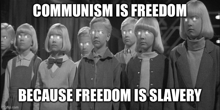brainwashed | COMMUNISM IS FREEDOM; BECAUSE FREEDOM IS SLAVERY | image tagged in brainwashed | made w/ Imgflip meme maker