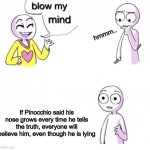 Blow my mind | There is no worse person to help you with schizophrenia than an empty therapist chair | image tagged in blow my mind | made w/ Imgflip meme makerYou shall now google how old Nintendo is | Nintendo is 135 years old | image tagged in blow my mind,nintendo,video games,memes,funny,gaming | made w/ Imgflip meme maker. | every dog's nose looks the exact same, regardless of the breed. | image tagged in blow my mind,memes,dogs,funny,cute | made w/ Imgflip meme makertrickery 101 | If Pinocchio said his nose grows every time he tells the truth, everyone will believe him, even though he is lying | image tagged in blow my mind,memes,funny,pinnochio | made w/ Imgflip meme makerHe’s got a point | IF HUMANS TAKE BATHS IN WATER, WHY ARE WE ALWAYS TRYING TO GET  OUT OF THE RAIN? | image tagged in blow my mind,memes,funny,rain,bath,wait what | made w/ Imgflip meme makerBlow my mind | THE MADE IN CHINA STICKERS ARE MADE IN SOUTH KOREA. | image tagged in blow my mind | made w/ Imgflip meme maker