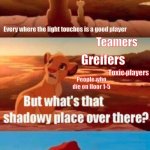 Every where the light touches is a good player That’s the dumba*ses People who always get to floor 20+ Distractores that get you far People ...