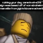 ruining your day: zane in s1-s3's design was based off of von stroheim the german elite from jojo's bizzare adventure.