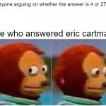 everyone arguing on whether the answer is 4 or 2763: me who answered eric cartman