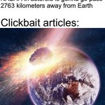 NASA: An asteroid is gonna go pass 2763 kilometers away from Earth Clickbait articles: