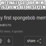 WE FINALLY GOT OUR MEME AT 2763 VIEWS BEFORE SEPTEMBER