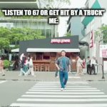 "LISTEN TO 67 OR GET HIT BY A TRUCK" ME: