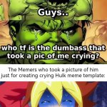 The Memers who took a picture of him just for creating crying Hulk meme template: