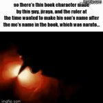 so there's this book character made by this guy, jiraya, and the ruler at the time wanted to make his son's name after the mc's name in the ...