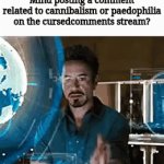 Say Jarvis, I'm in an urgent need of Imgflip points. Mind posting a comment related to cannibalism or paedophilia on the cursedcomments stre...
