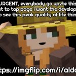 URGENT, everybody go upvte this post to top page i want the developers to see this peak quality of life thing https://imgflip.com/i/aldahl