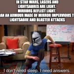 IN STAR WARS, LASERS AND LIGHTSABRES ARE LIGHT.