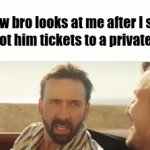 how bro looks at me after I say that I got him tickets to a private island