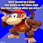 there should be a giant fish button on the home page that does nothing when you press it