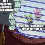 ME, A FORGOTTEN PASSWORD I SWEAR I REMEMBER THE "RESET PASSWORD" BUTTON HAVING THE TIME OF ITS LIFE