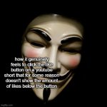 how it genuinely feels to click the like button on a youtube short that for some reason doesn't show the amount of likes below the button