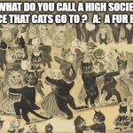 Q:WHAT DO YOU CALL A HIGH SOCIETY DANCE THAT CATS GO TO ? A: A FUR BALL .
