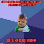 SENT CRUSH BOUQUET OF CHOCOLATE COVERED STRAWBERRIES GOT HER NUMBER