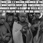 THERE ARE 2.2 BILLION CHILDREN IN THE WORLD WHO SUFFER EVERY DAY. CONSERVATIVES ARE ONLY WORRIED ABOUT A CLUMP OF CELLS IN A WOMB. YOU CAN'T...