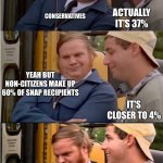 WHITE PEOPLE ONLY MAKE UP 8.6% OF SNAP RECIPIENTS EM ALRIGHT, I JUST HATE MINORITIES AND IMMIGRANTS WE KNOW IT'S CLOSER TO 4% YEAH BUT NON-C...