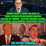 HAVING MADE A LIVING FOR OVER 20 YEARS PUSHING INCREASINGLY RADICAL LEFTISM AS 'HUMOR', STEPHEN COLBERT CLAIMS TO BE MORE CONSERVATIVE THAN...