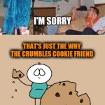 THAT'S JUST THE WHY THE CRUMBLES COOKIE FRIEND I HEARD YOU ACCIDENTALLY LOST A FOLLOWER I'M SORRY