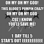 OH MY OH MY GOD! 1 DAY TILL 5 STAR'S OUT EEEEEEEEEEE THIS BLOOD'S PUMPIN CRAZY OH MY OH MY GOD CUZ I KNOW YOU'LL SAVE ME!