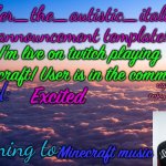 Excited Minecraft music I’m live on twitch playing Minecraft! User is in the comments