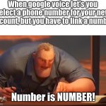 When google voice let's you select a phone number for your new account, but you have to link a number Number is NUMBER!