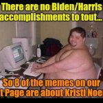 There are no Biden/Harris accomplishments to tout... So 8 of the memes on our Hot Page are about Kristi Noem.