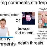 Msmg comments starterpack commenters: either or maybe even horny comments bowser fart meme people saying slurs, and deleting the comment 0.5...