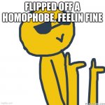 FLIPPED OFF A HOMOPHOBE, FEELIN FINE