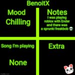 Chilling I was playing roblox with Ender and there was a sprunki freakbob ? None