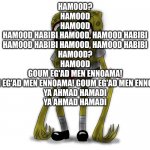Hamood? Hamood Hamood Hamood habibi Hamood, Hamood habibi Hamood habibi Hamood, Hamood habibi Hamood? Hamood Goum eg'ad men e