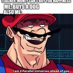 TEACHER: MONEY CAN'T BUY YOU HAPPINESS ME: BUYS A DOG ALSO ME: