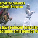 It's part of the calvary's new Green Program We have reduced horse farts & road apple emissions by 100%!