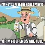 I'M NOT SURE IF THE HORSE FARTED OR MY DEPENDS ARE FULL