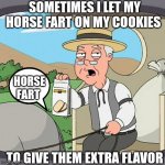 SOMETIMES I LET MY HORSE FART ON MY COOKIES TO GIVE THEM EXTRA FLAVOR HORSE FART