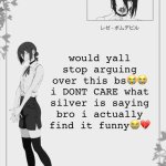 would yall stop arguing over this bs?? i DONT CARE what silver is saying bro i actually find it funny??