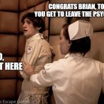 CONGRATS BRIAN, TODAY YOU GET TO LEAVE THE PSYCH WARD NO, I LIKE IT HERE