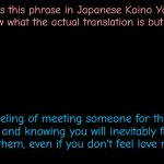 There's this phrase in Japanese Koino Yokan I don't know what the actual translation is but it means the feeling of meeting someone for the ...