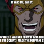 IT WAS ME, BARRY. I CONVINCED WARNER TO CAST EZRA MILLER. I WROTE THE SCRIPT. I MADE THE DEEPFAKE CAMEOS.