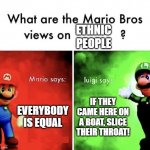 EVERYBODY IS EQUAL IF THEY CAME HERE ON A BOAT, SLICE THEIR THROAT! ETHNIC PEOPLE
