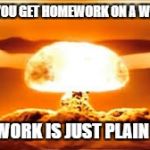 WHEN YOU GET HOMEWORK ON A WEEKEND HOMEWORK IS JUST PLAIN EVIL!!!