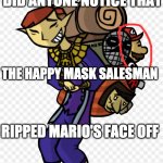 DID ANYONE NOTICE THAT THE HAPPY MASK SALESMAN RIPPED MARIO'S FACE OFF AND MADE IT INTO CLOTHING?