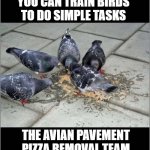 YOU CAN TRAIN BIRDS TO DO SIMPLE TASKS THE AVIAN PAVEMENT PIZZA REMOVAL TEAM