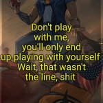Don't play with me, you'll only end up playing with yourself Wait, that wasn't the line, shit