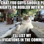 YO CHAT YOU GUYS SHOULD PLAY 99 NIGHTS ON ROBLOX WITH ME FR I'LL LIST MY QUALIFICATIONS IN THE COMMENTS