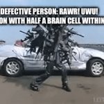 DEFECTIVE PERSON: RAWR! UWU! EVERY PERSON WITH HALF A BRAIN CELL WITHIN 10 MILES: